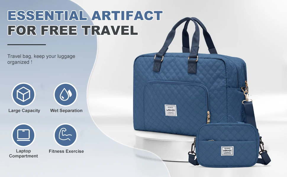 Travel Bag for Woman ,Carry On Foldable Travel Bag,Weekender Overnight Bag,Simple Women's Clothing Backpack Luggage Handbag,blue