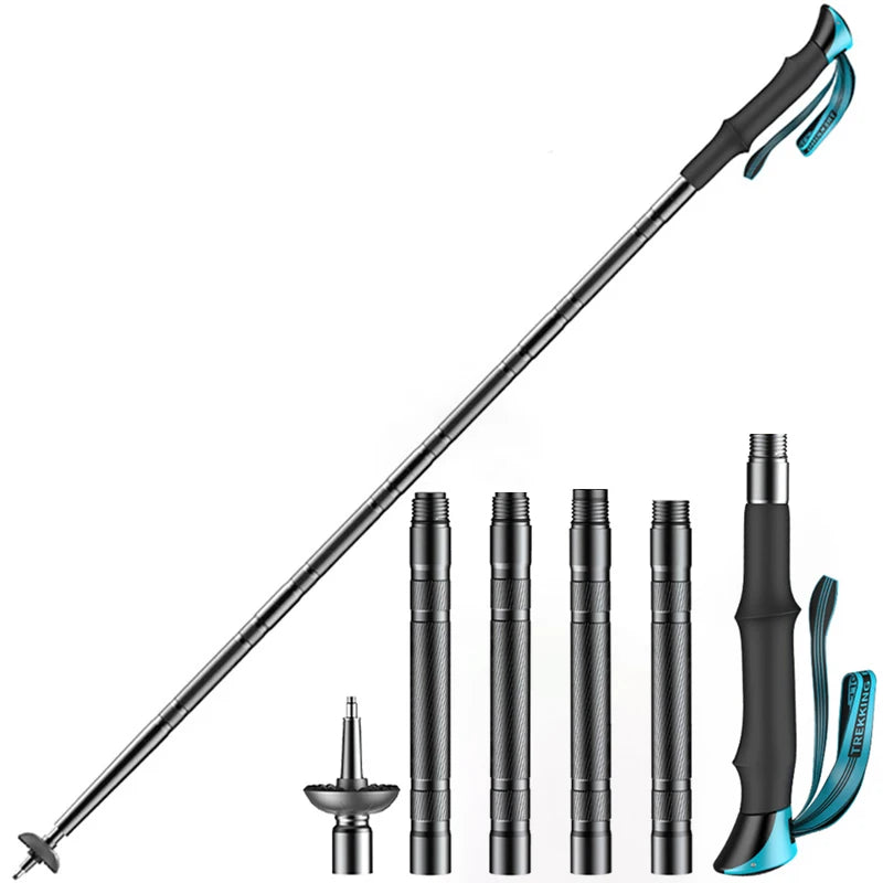 Trekking Poles Multifunctional Lightweight Foldable Aluminum Alloy Alpenstock Outdoor Camping Hiking Stick Self Defense Stick