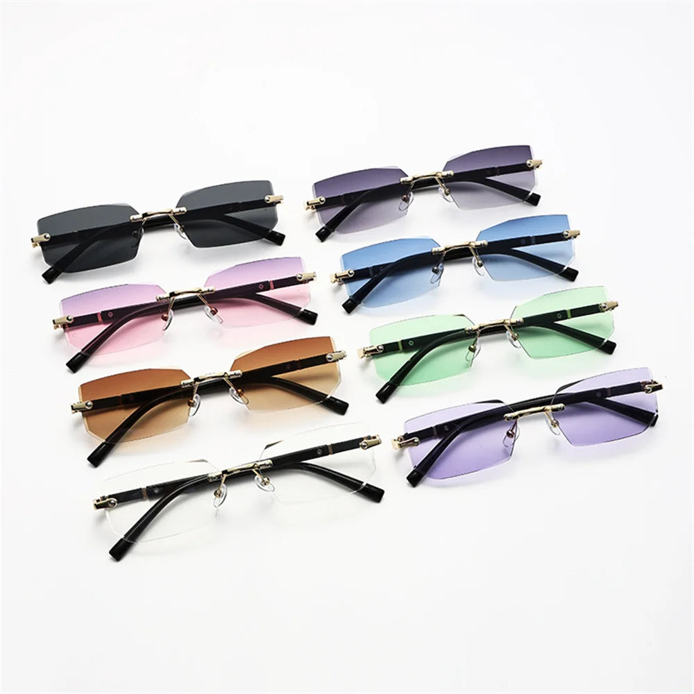 Trendy Rimless Sunglasses for Men Women Fashion Frameless Rectangle Sun Glasses Retro Shades Summer Traveling Eyewear UV400