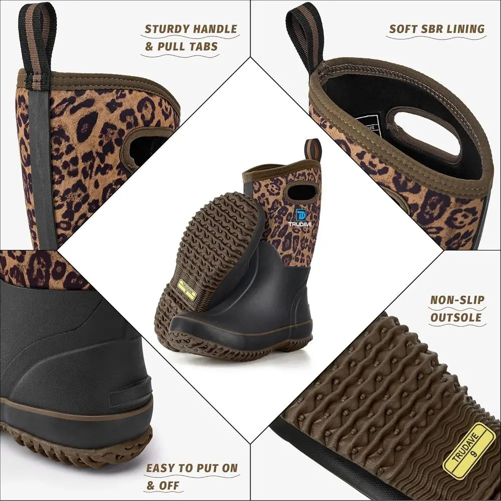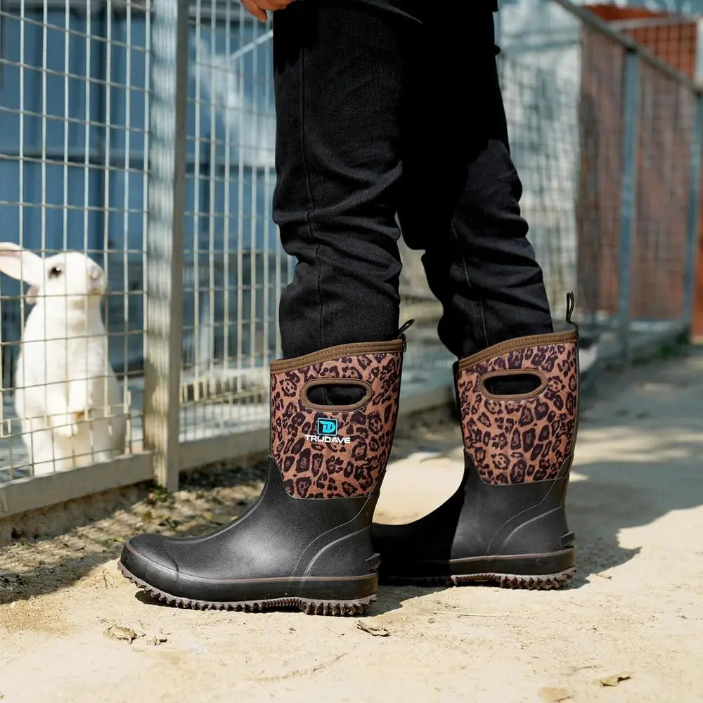 Trudave Rubber Boots for Women, Mid Calf Rain Boots, Womens Waterproof Boots, Neoprene Insulated Outdoor Work Mud Boots for Hunt