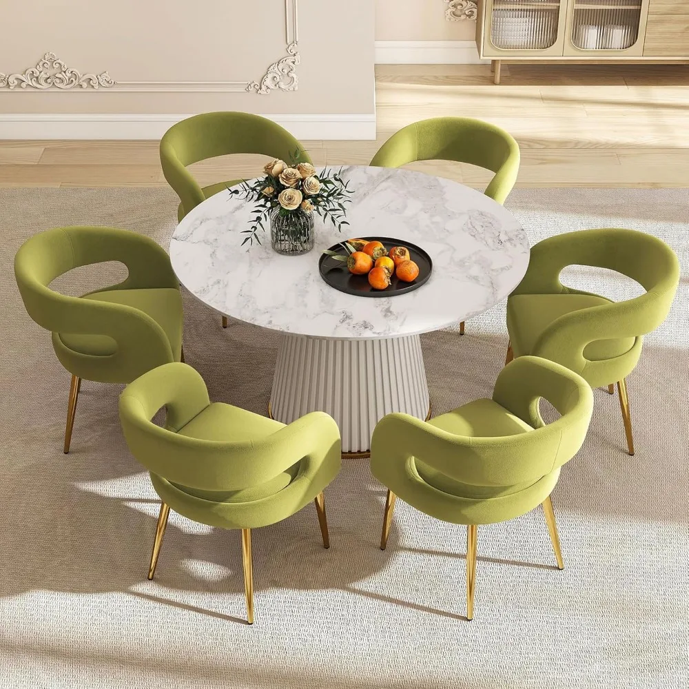 Upholstered Dining Chairs Set of 6, Velvet Kitchen Chairs with Open Back&Arm Kitchen & Dining Room Chairs Gold Legs Accent Diner