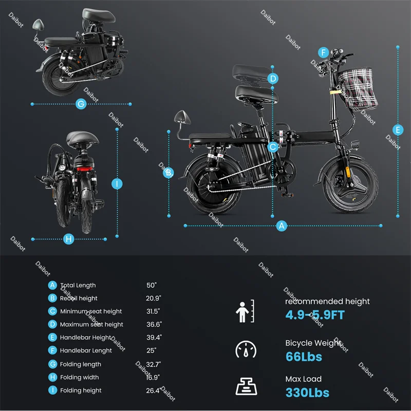 US Stock Adult Folding Electric Bike For 2 People Powerful 500W 32KM/H Multi Shock Absorption Family Electric Bicycle Men Women
