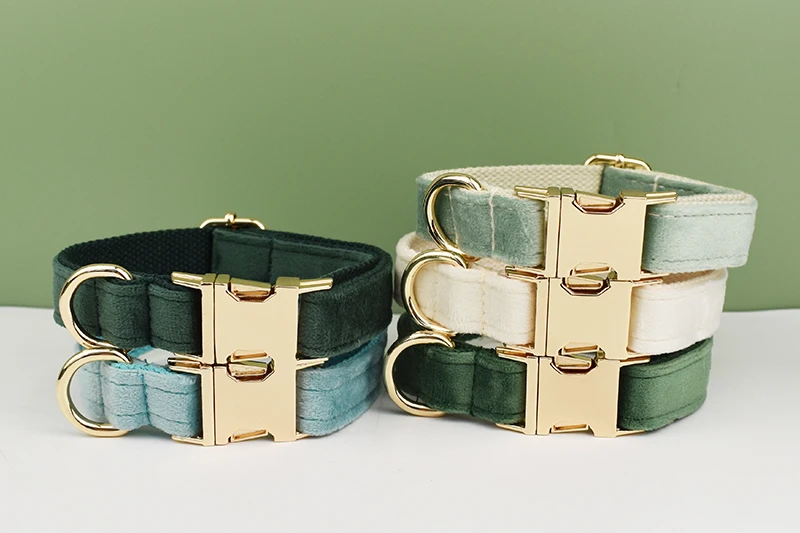 Velvet adjustable dog CollarLeash,Gold dog Collar and leash set,Dog Collar Leash and harness set strong large dog