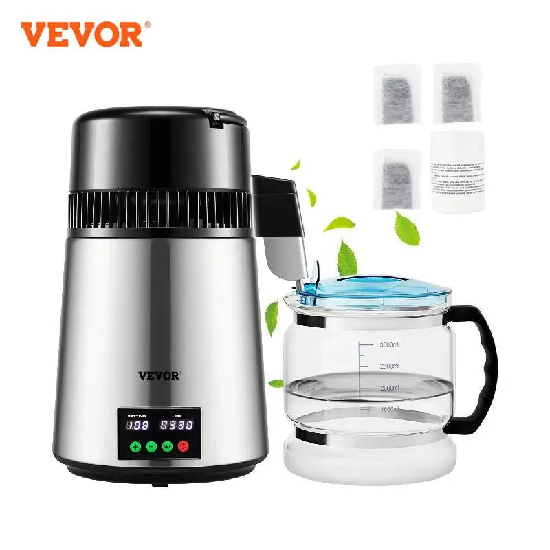 VEVOR's water distiller with an upgraded panel is a perfect tool for purifying your water and helping you get a constant supply of distilled water, whether you're at home or in the office. This distiller can effectively dissolve VOCs and filter other impurities, and the distilling speed reaches up to 0.3 Gal (1 L) of water per hour. What's more, as an ideal match for a tiny kitchen, it is not much bigger than a kettle in size and won't take up so much of your space.