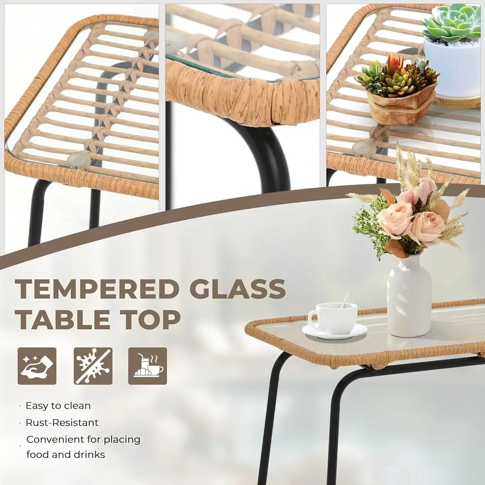 Sturdy and Durable Frame – The set is built with powder-coated iron frames that are resistant to rust and deformation. The coffee table has a tempered glass top and solid legs, ensuring stability and long-lasting durability.