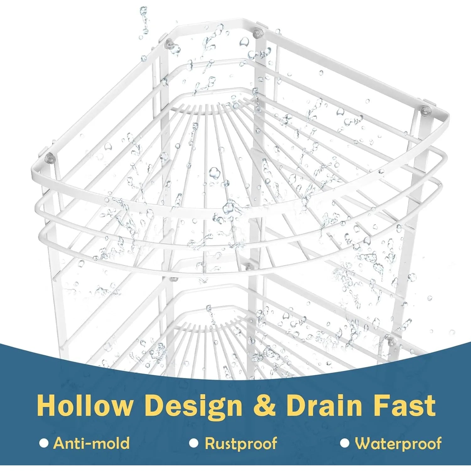 White 3-Tier Metal Corner Shelf Rustproof, Bathroom/Kitchen/Living Room Shower Storage Organizer w/Space-Saving Design