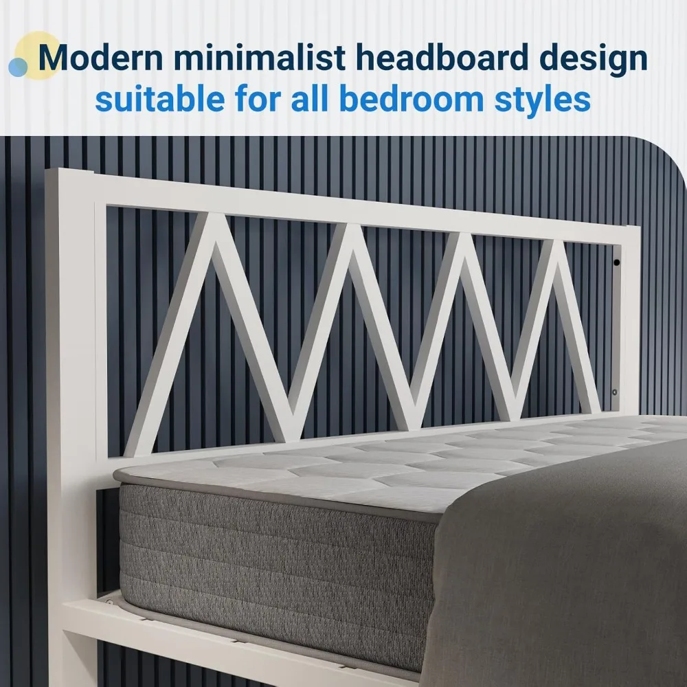 White Metal Full Size Bed Frame with Headboard, 18 Inch Platform Bed, No Box Spring Needed, Easy Assembly