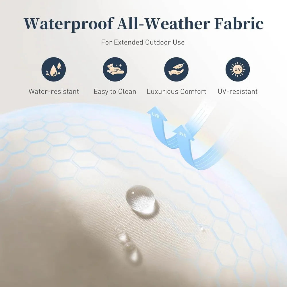 Material: Acacia Wood, Rattan Wicker, Waterproof Cushion Fabric