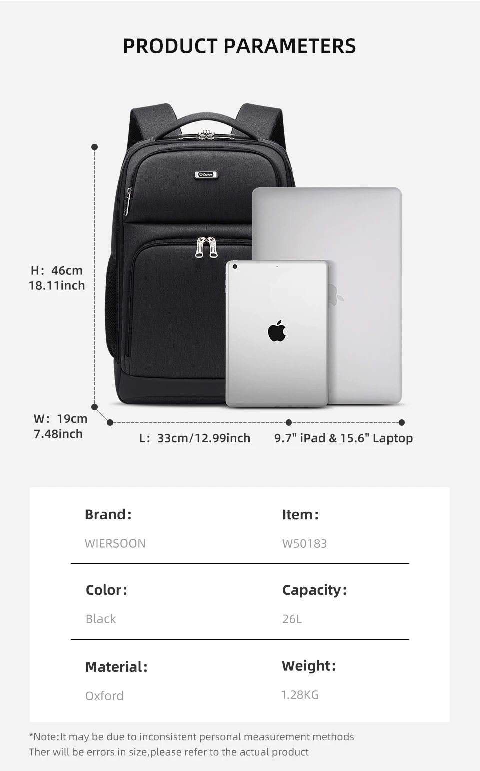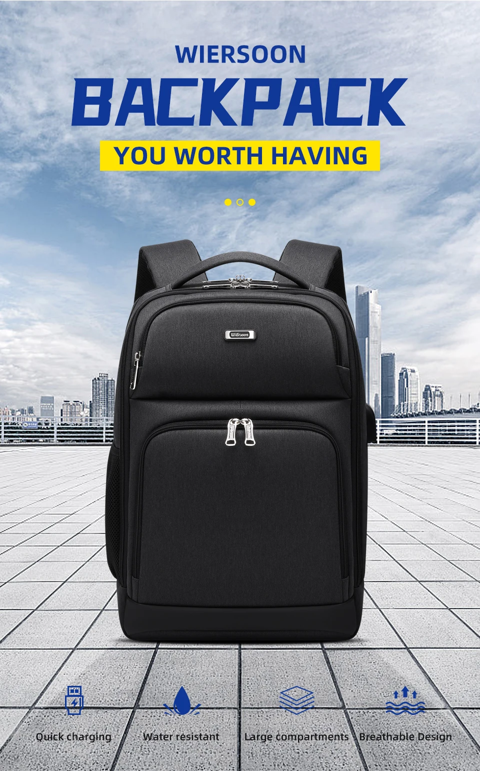 WIERSOON 18Inch Business Backpack Men USB Charging Laptop Travel Backpack Mochila for Women