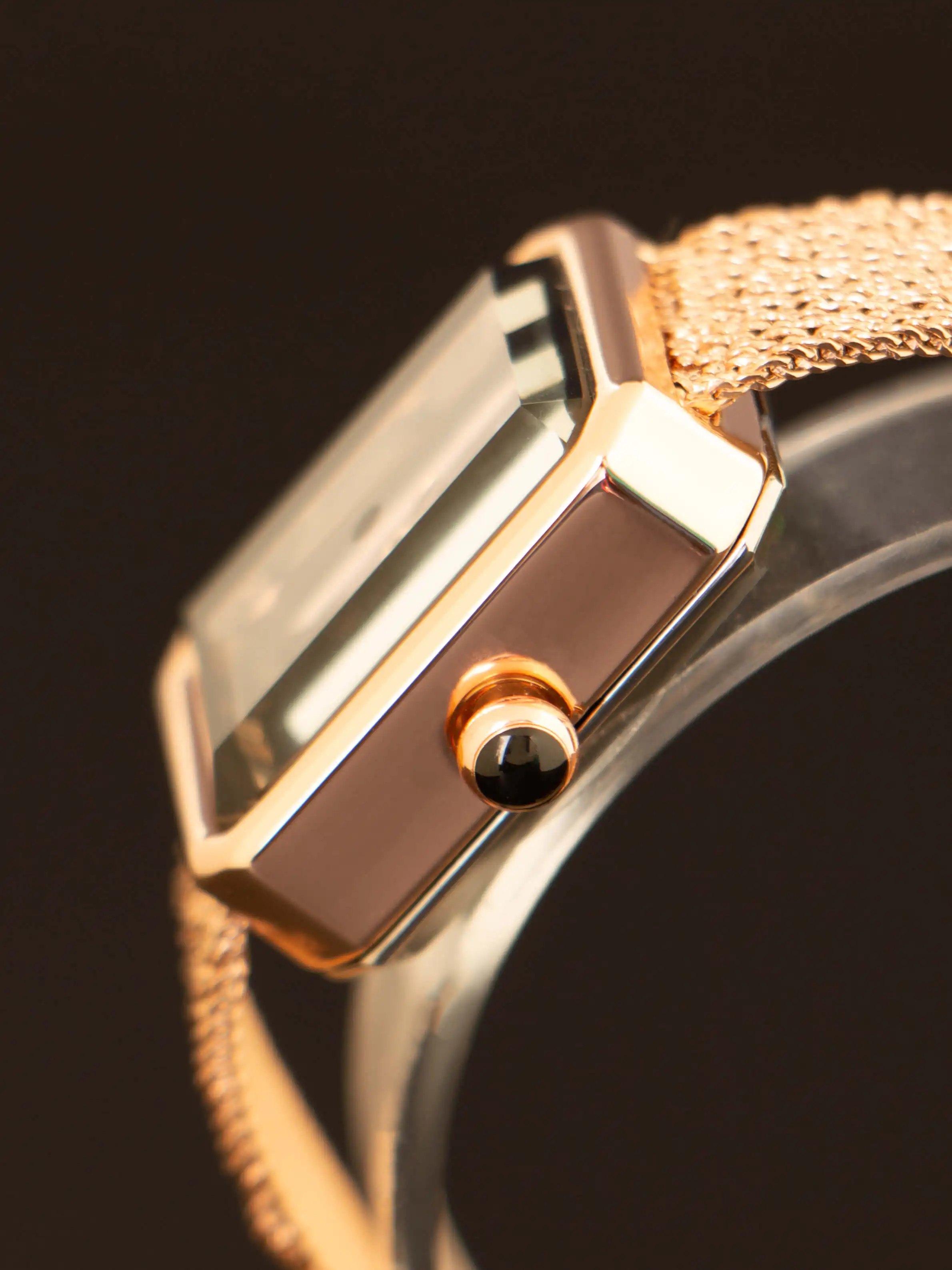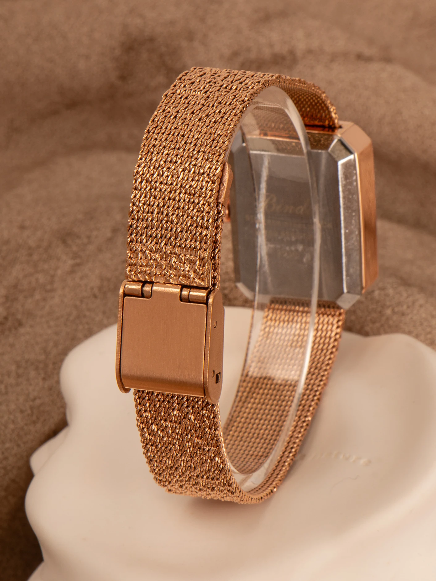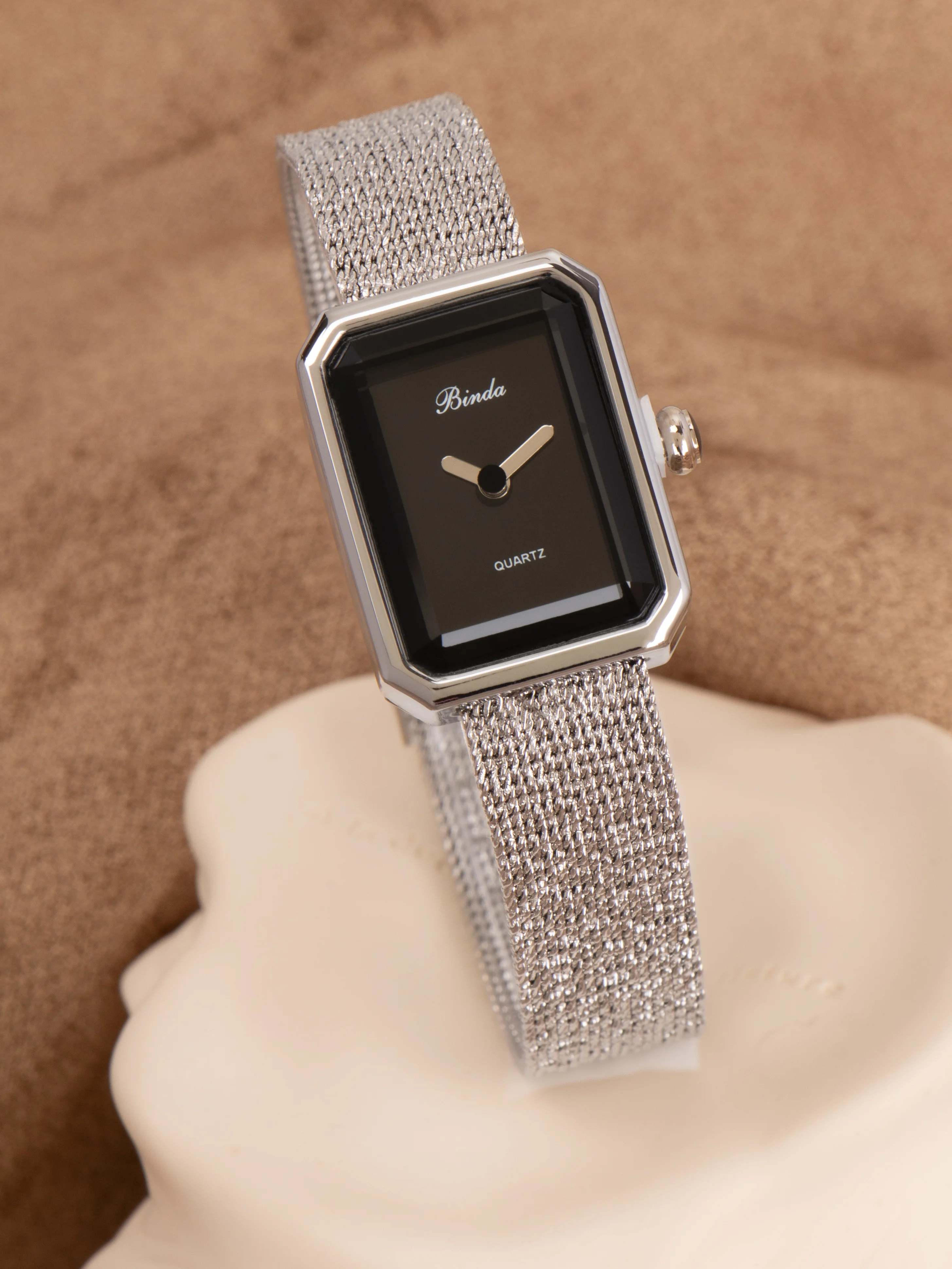 Women’s Luxury Quartz Watch – Gift Box, Zinc Alloy Case, Black Gem Crown, Stainless Steel Mesh Band, Daily & Business Wear