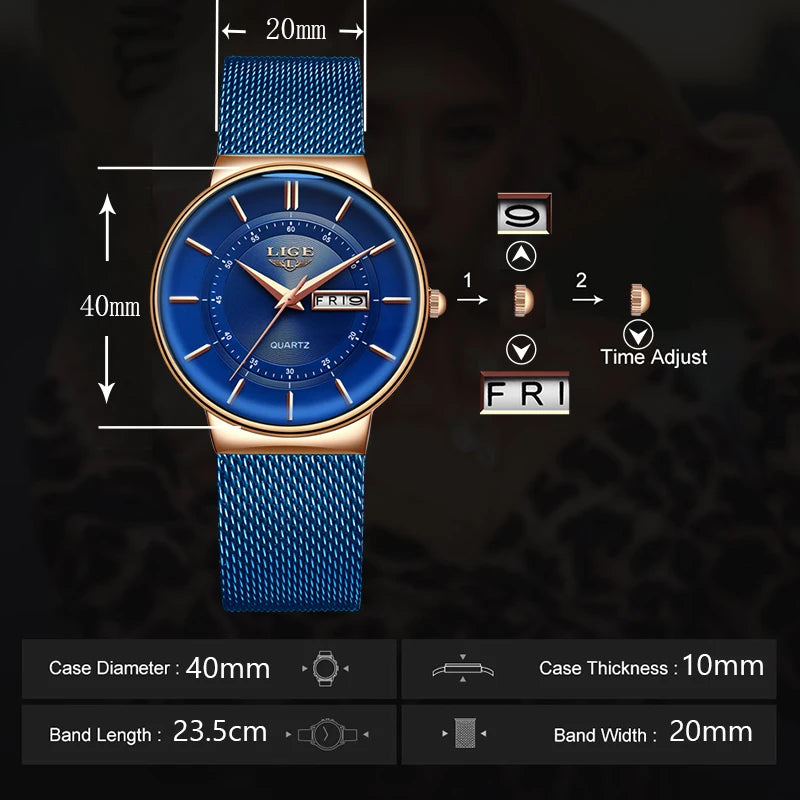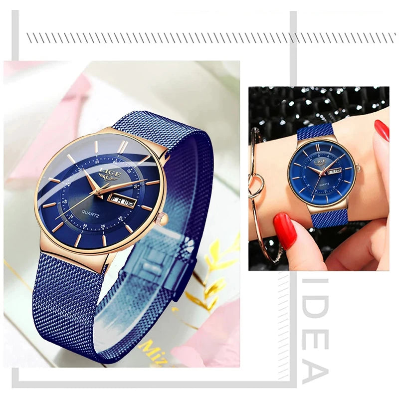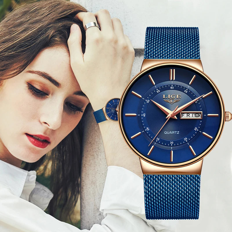 Women Watches LIGE Top Brand Luxury Date Week Dial Bracelet Woman Wrist Watch Female Waterproof Quartz Clock Relogios Feminino