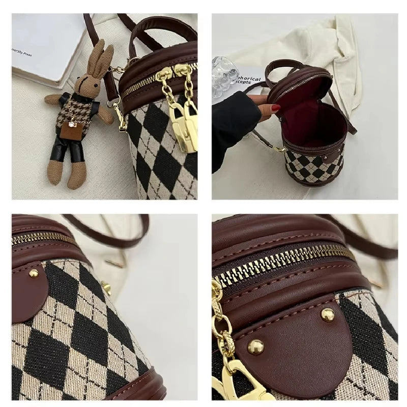 Women's Bag for Women Trend Fashion Luxury Designer Zipper Small Female Handbags femaleLeather Bucket Shoulder Bag With Pendant