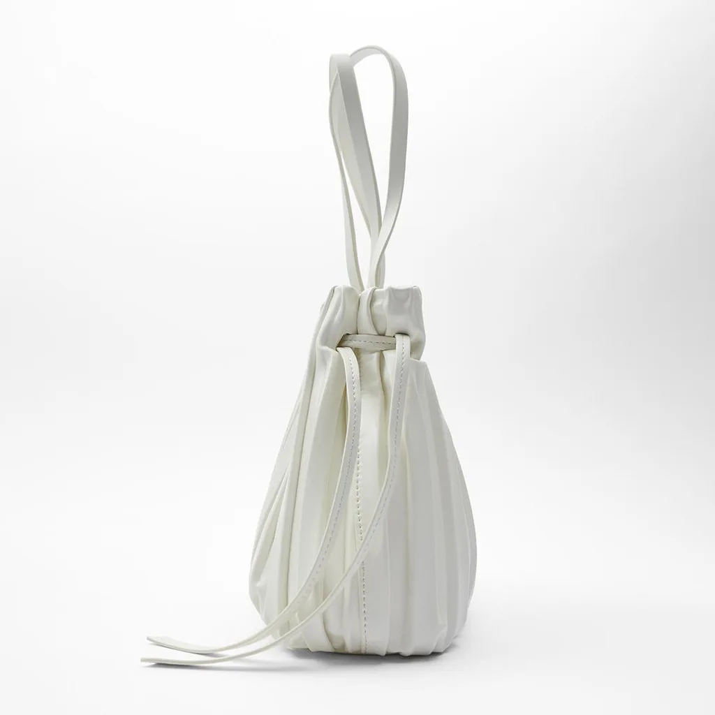 Women's Bag New Simple and Fashionable Bucket Bag Women's Single Shoulder Crossbody Small Pleated Drawstring Mouth Handbag
