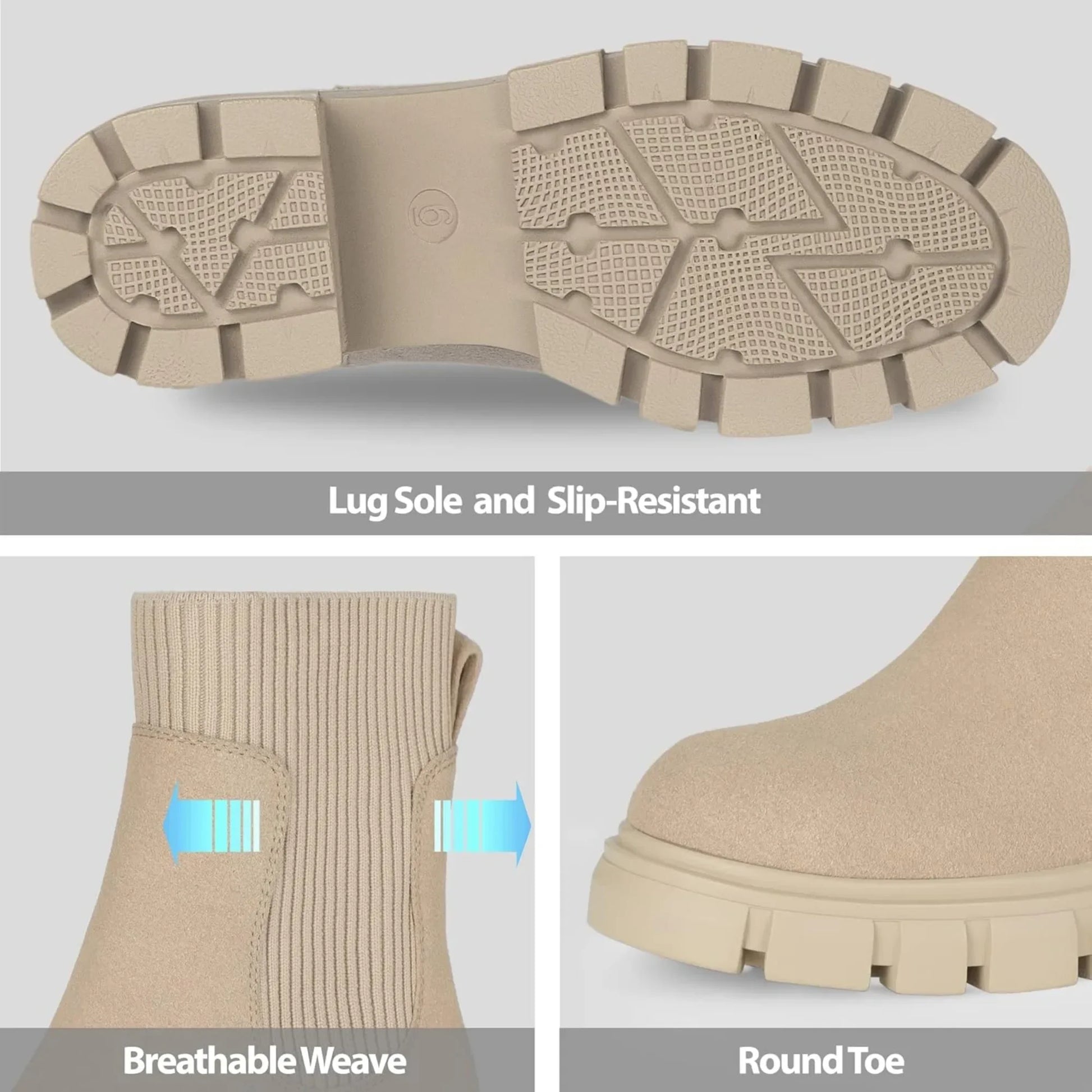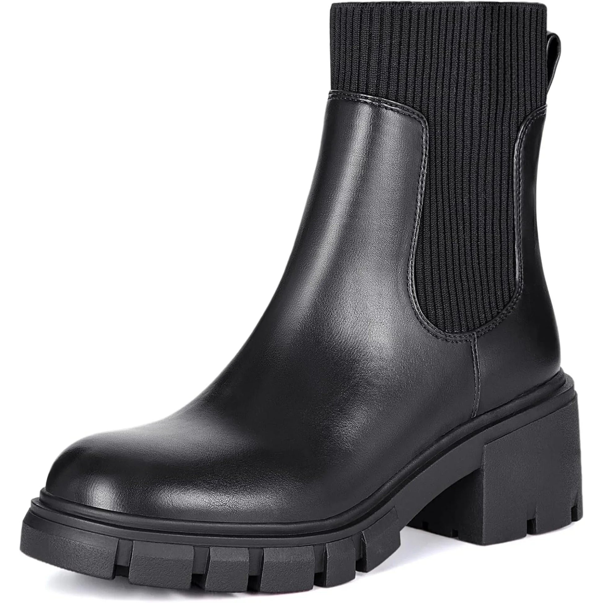 Athlefit Women's Chelsea Platform Ankle Boots Chunky Combat Non-Slip Lug Sole Booties