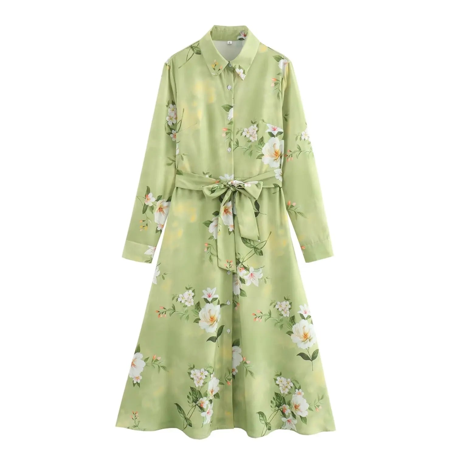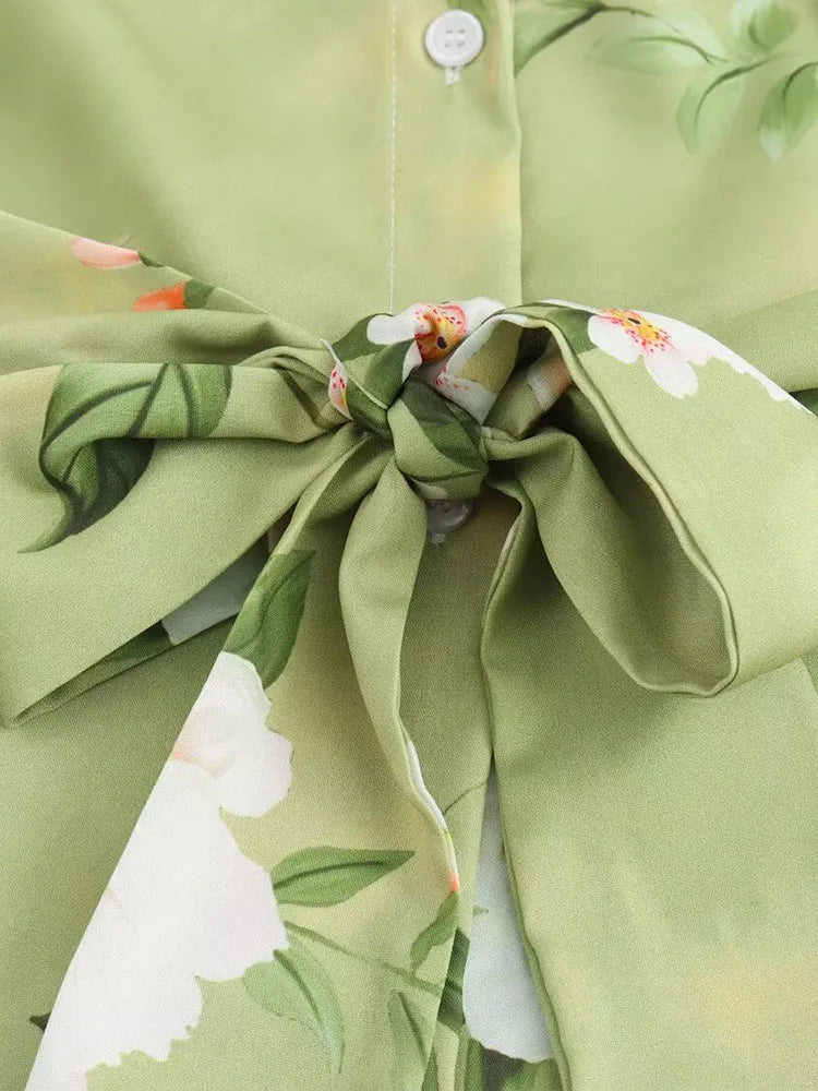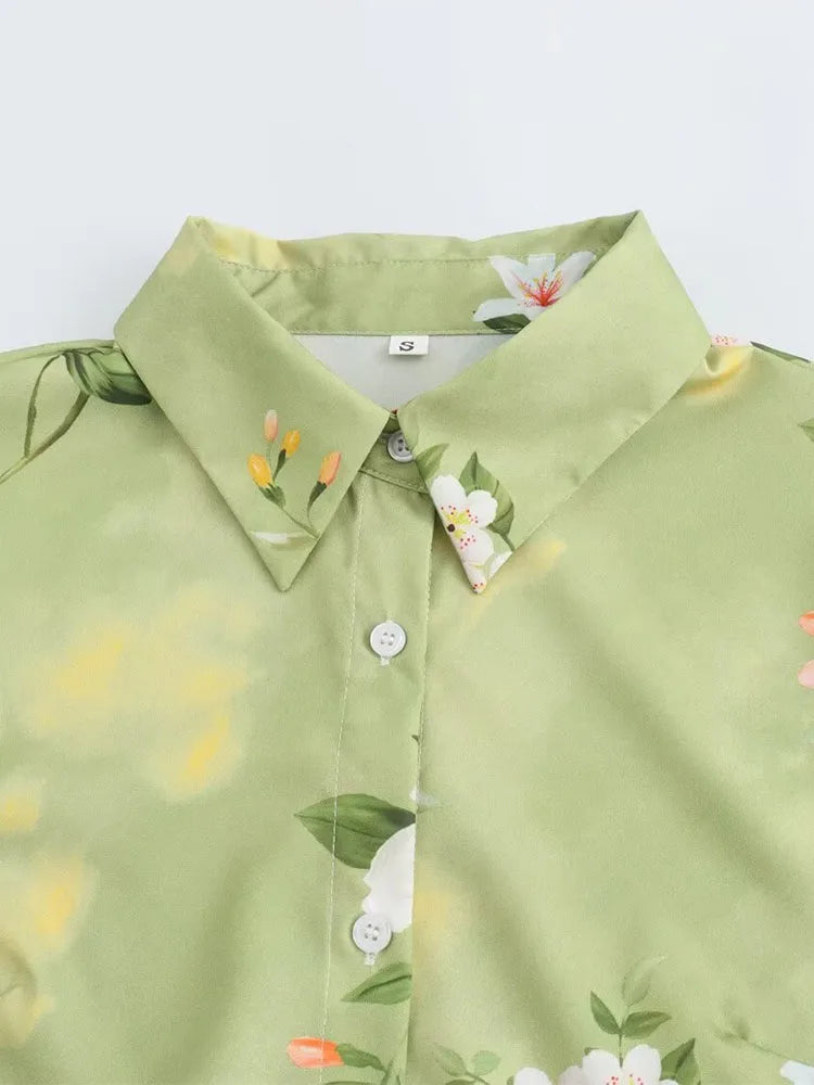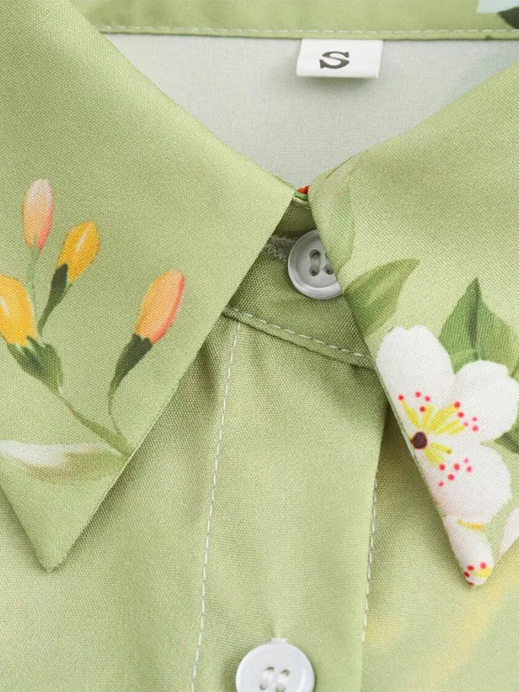 Women's clothing 2024 new fashion European and American style retro simple printed lapel single-breasted slim flower dress