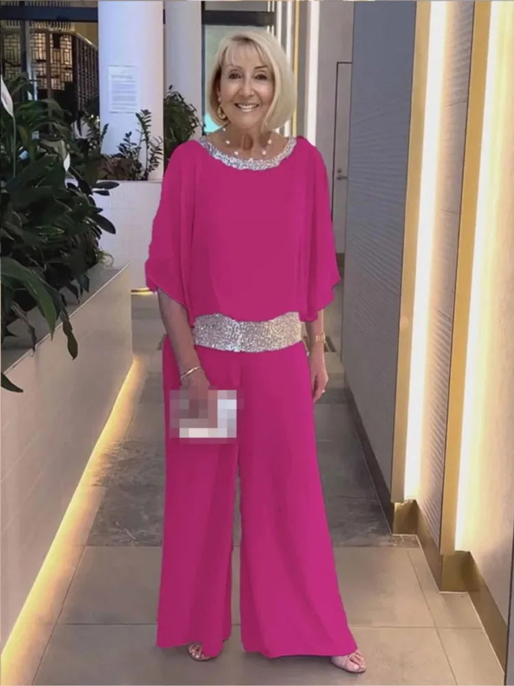 Women's Clothing 2024 Spring Autumn New Round Neck Fashionable Bright Color Bat Shirt Wide Leg Pants Half Sleeve Two-piece Set