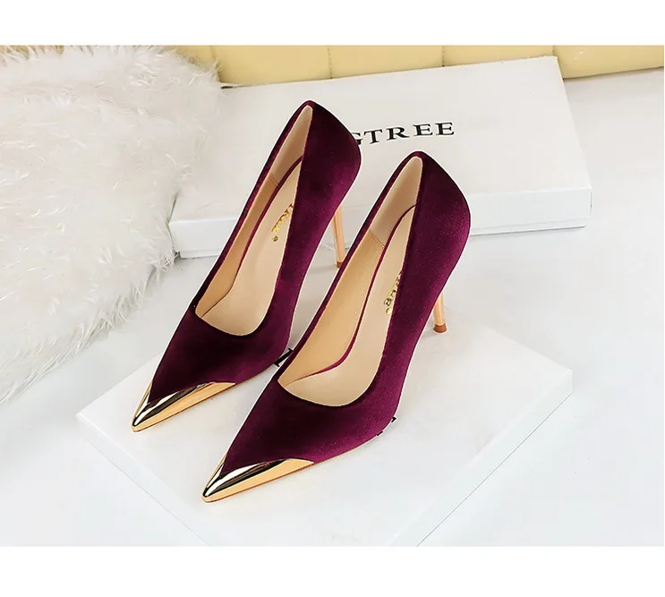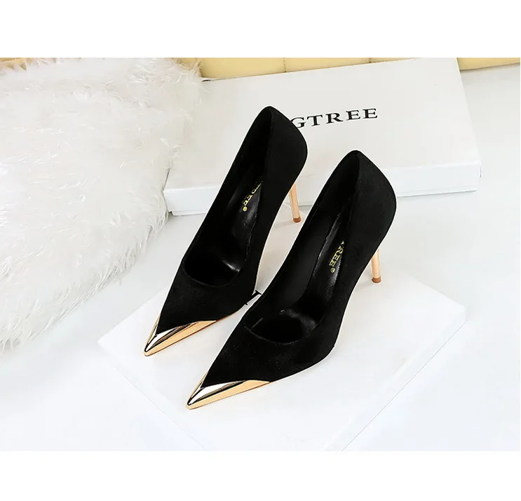 Women's Fashion Light Luxury High Heels Metal Pointed Suede Fine Heels Single Shoes