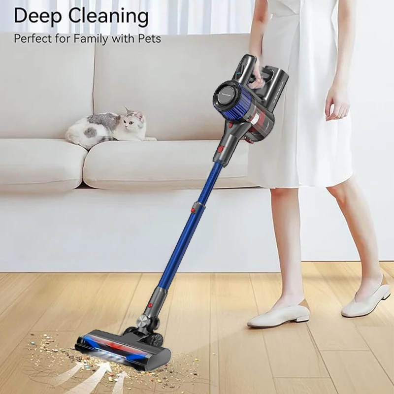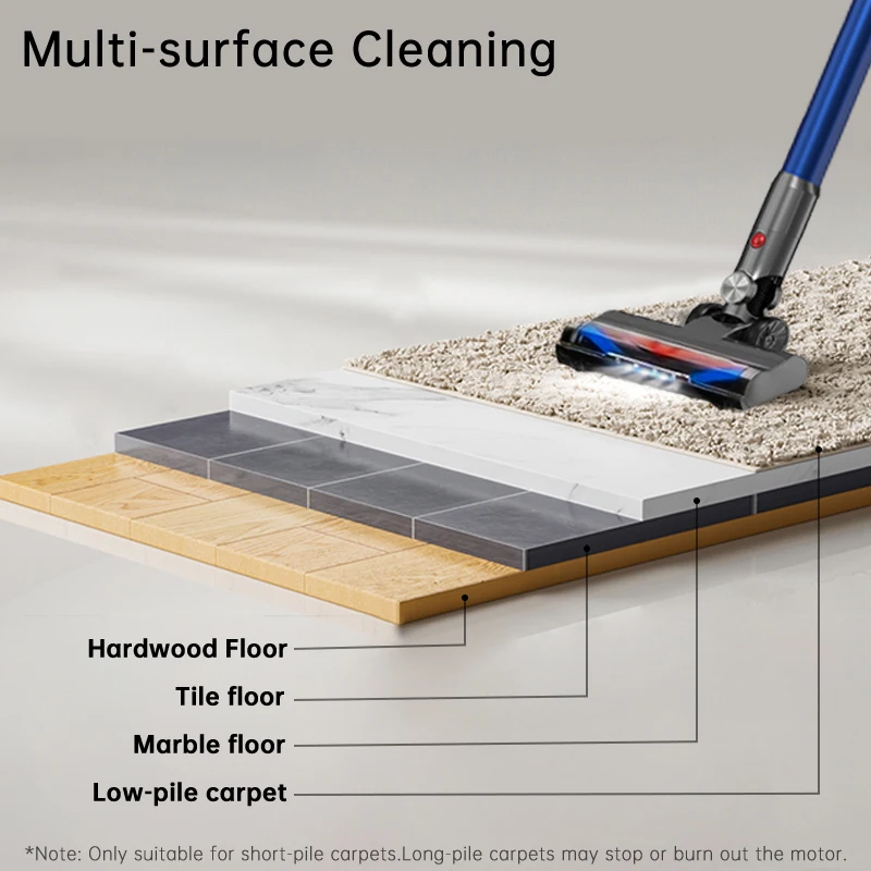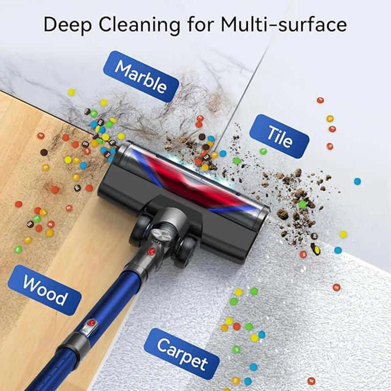 Multi-functional Cordless Upright Vacuum Cleaner with 6-Stage Filtration System Multi-layer cyclonic filtration captures 99.99% of fine dust and retains fine particles