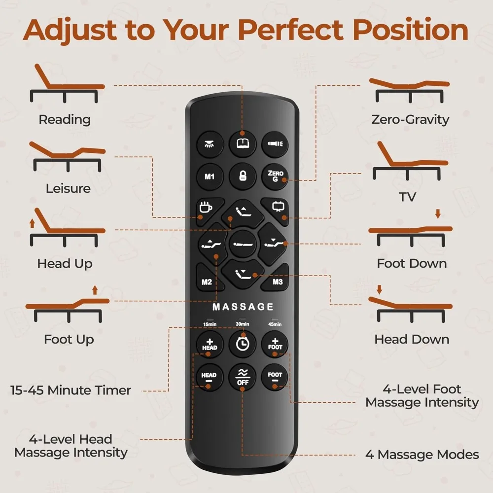 Yaheetech Queen Size Bed Frame with Wireless Remote, Massage, Nightlight, Adjustable Legs, and Head/Foot Tilt Features