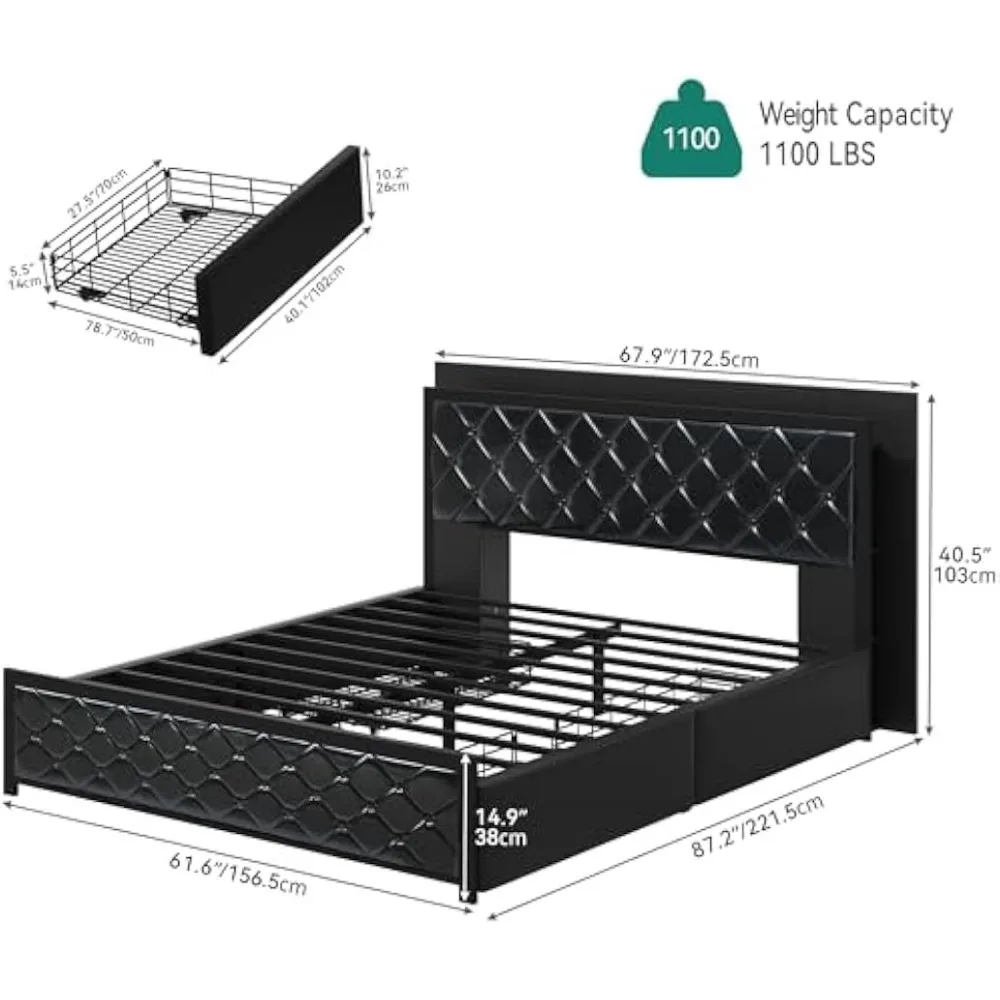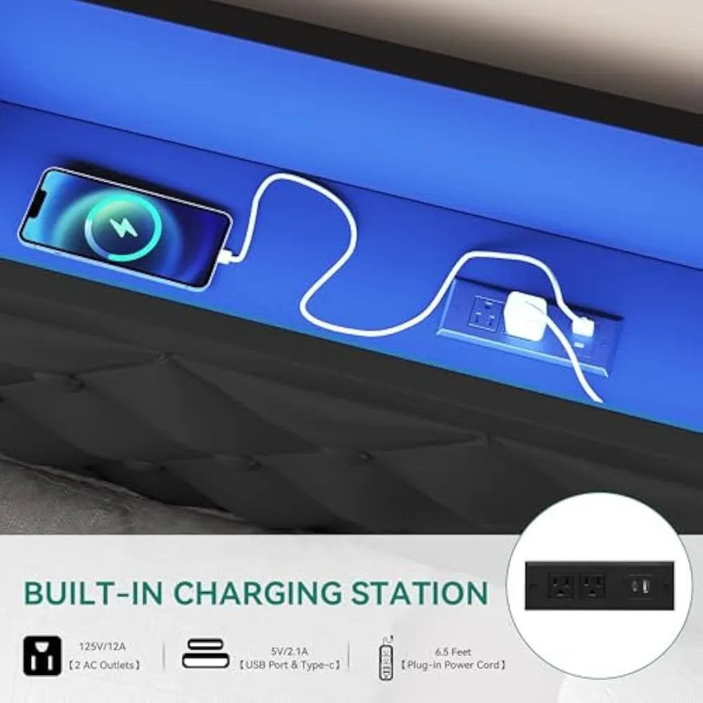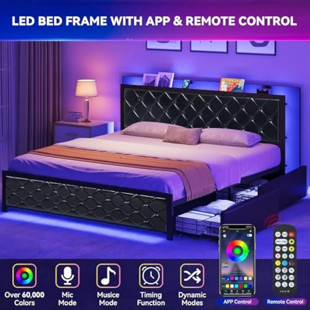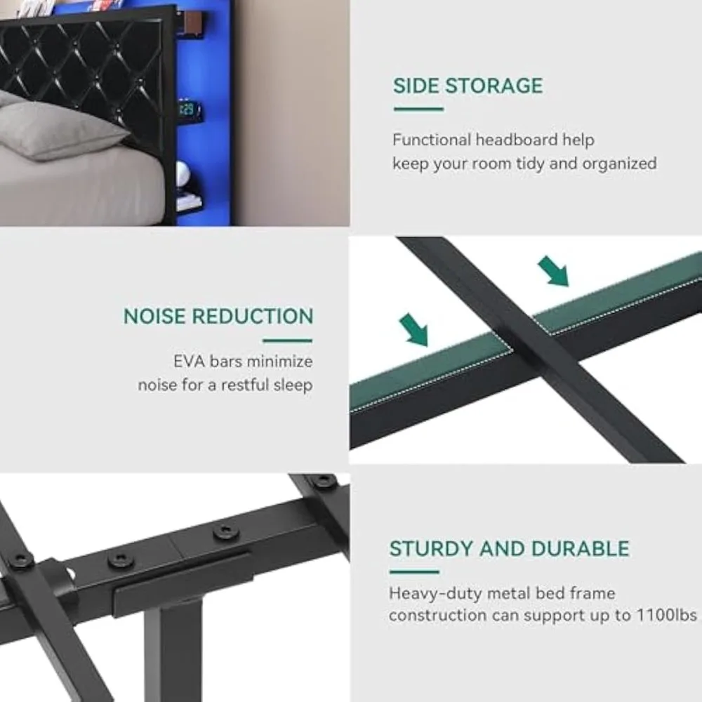 - Smart LED Light: Our queen bed frame with storage features integrated headboard and footboard LED lighting that provides a soft, soothing glow, allowing you to adjust the ambiance of your sleeping environment when you need a calming atmosphere for winding down or a gentle light for reading