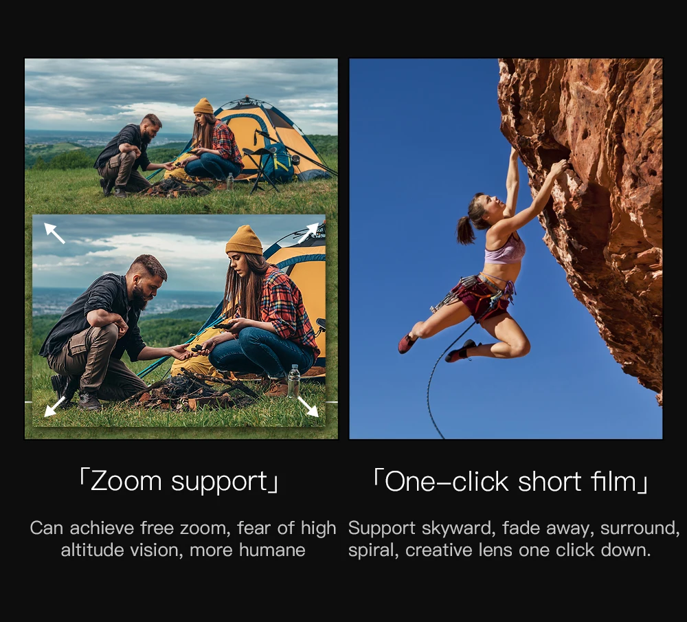 1. Three-axis brushless stabilization gimbal + EIS electronic stabilization, shooting video is more stable .