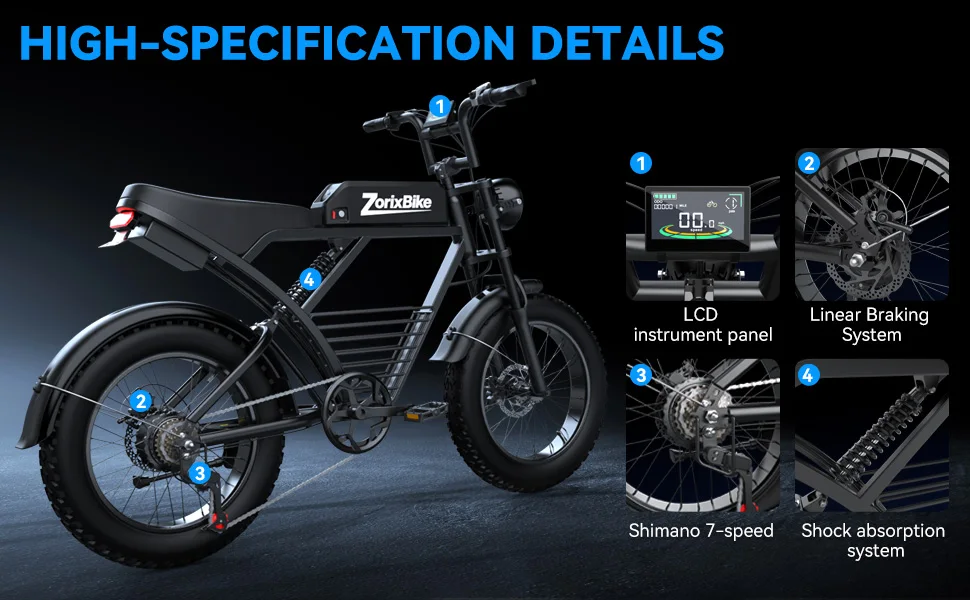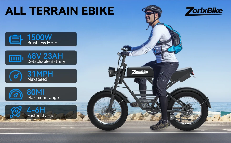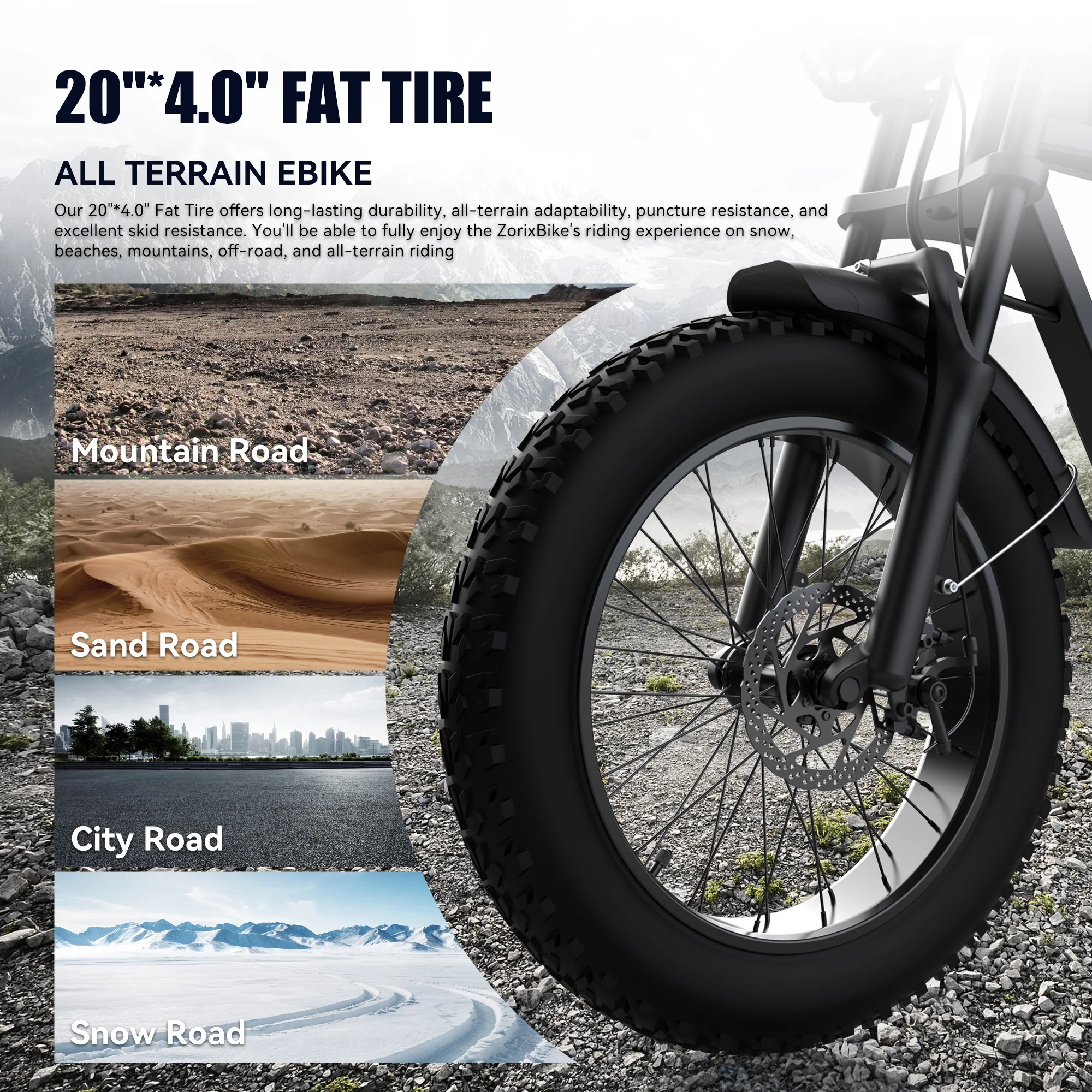 ZorixBike Z6 Retro Electric Bicycle for Adults 1500W 31MPH 48V 23AH Electric Motorcycle 20" Fat Tire Bike EBike LCD Screen